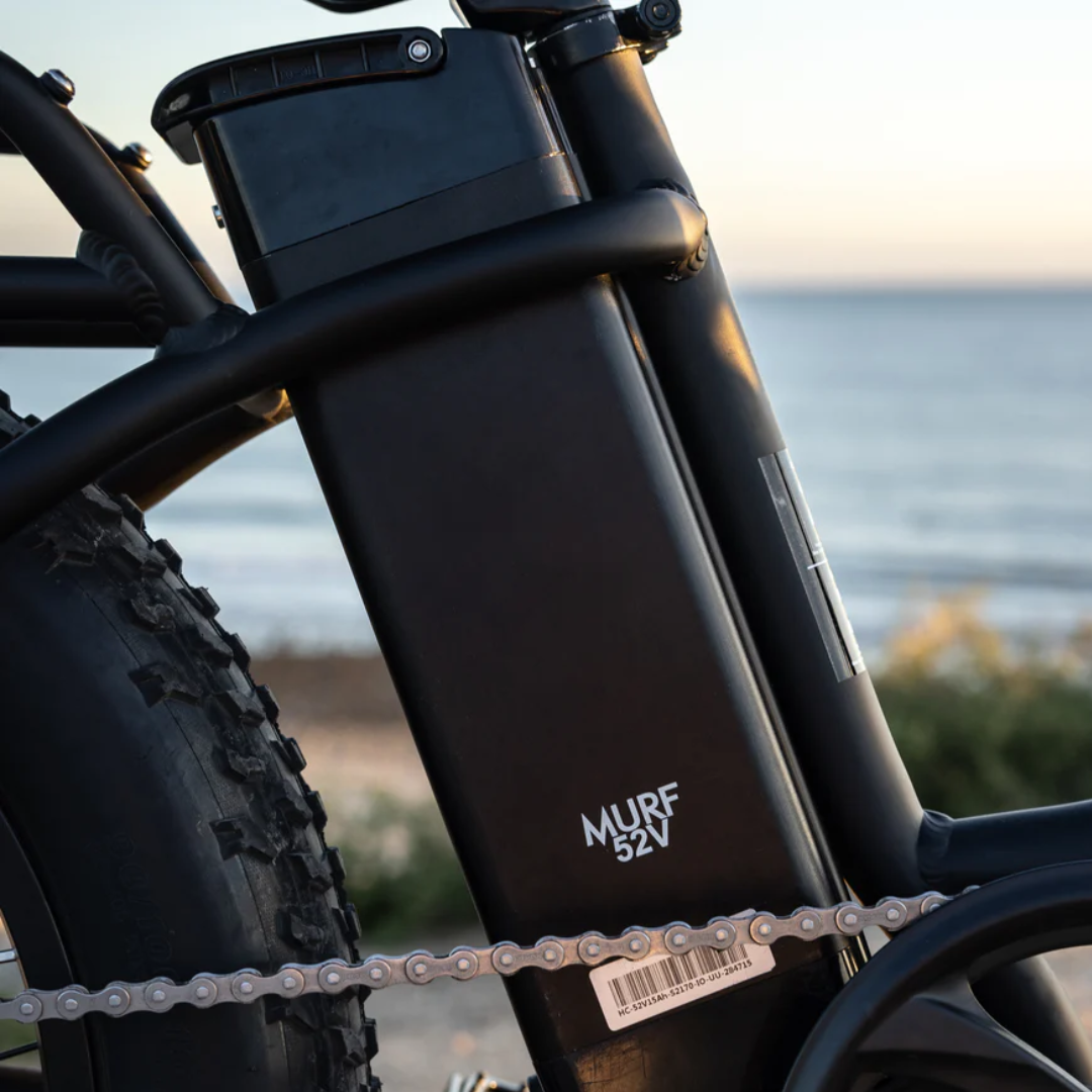 If we could only give one piece of electric bike buying advice, it would be to buy a bike with a 52 volt battery. Higher voltage batteries are able to deliver the same amount of power while using less current. This equates to less heat being generated within the system, increased efficiency, and a longer lifespan. Murf uses high quality, name brand, lithium-ion cells in all of our battery packs.